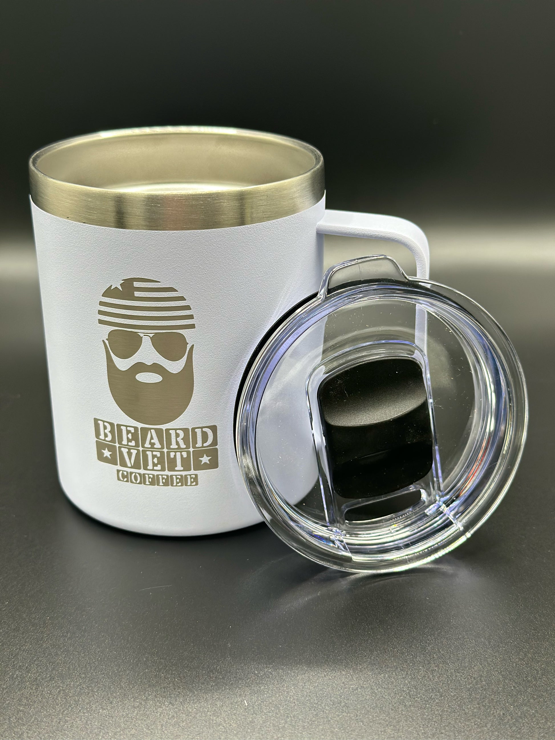 12oz. Tumbler with magnetic lid. Dishwasher safe. Perfect to keep your coffee warm or something stronger cold.